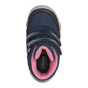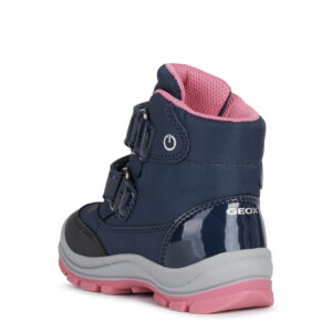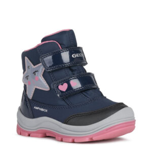 Śniegowce marki Geox ,wygodne buty na zimniejsze dni. Wytrzymała cholewka sprawdza się nawet w trudniejszych warunkach. W butach zastosowano chłonną wkładkę, to filc, ocieplenie. Dzięki podeszwie: wysokogatunkowe tworzywo, buty zachowują przyczepność i są bezpieczne. Model wyposażono w technologię Amphibiox, Flexy System, Geox Respira. Sprostają długim spacerom i intensywnym zabawom na dworze.